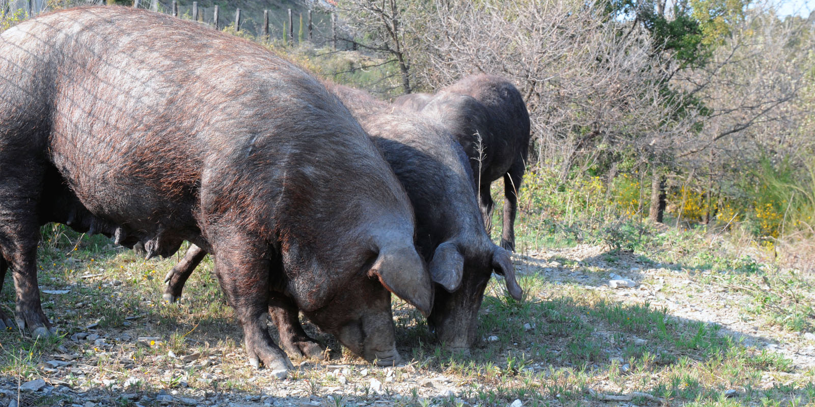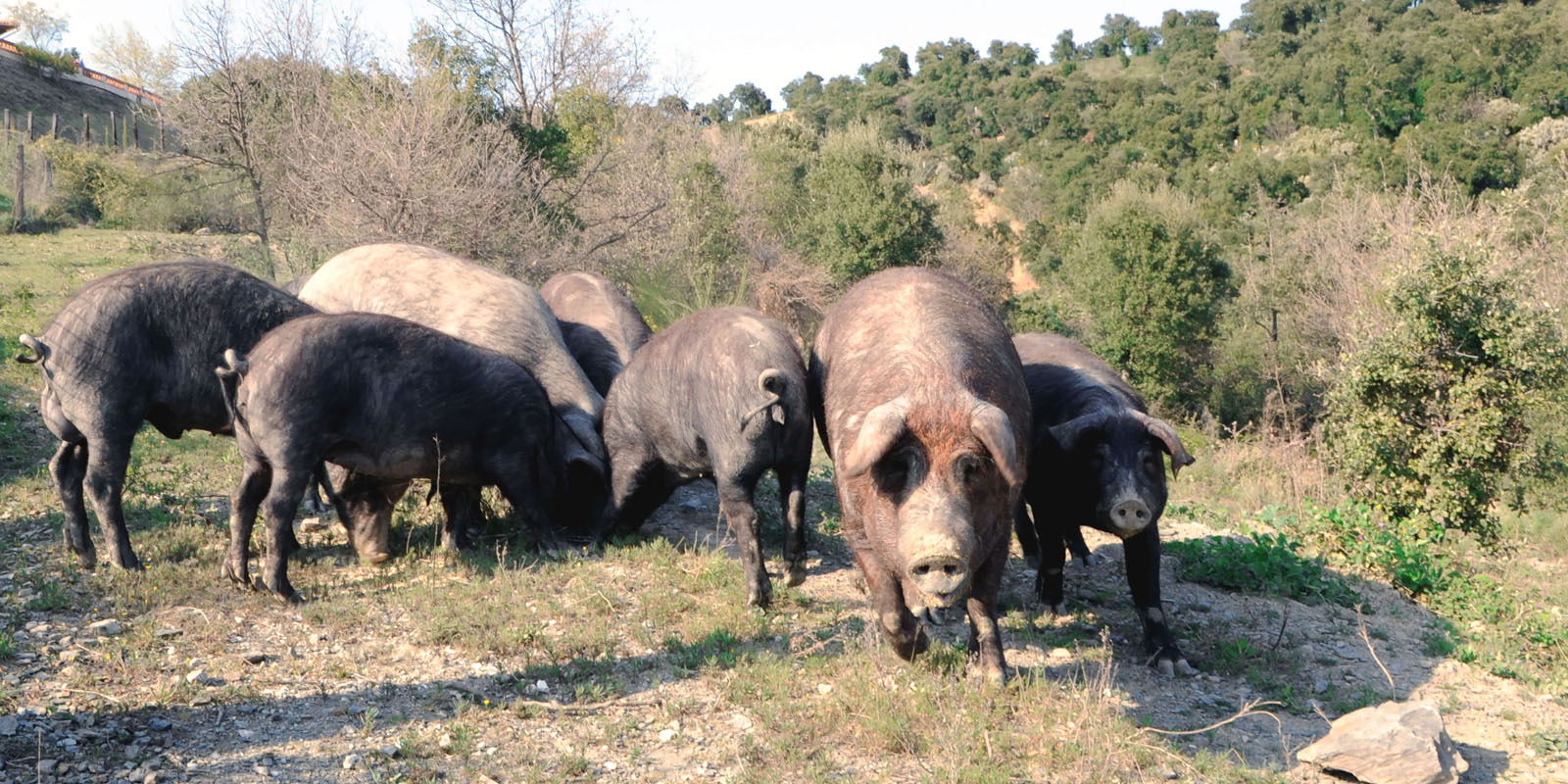 Les cochons noirs Ibériques du Mas Py sont élevés en totale liberté et se nourrissent aussi des glands de nos chênes-liège.
